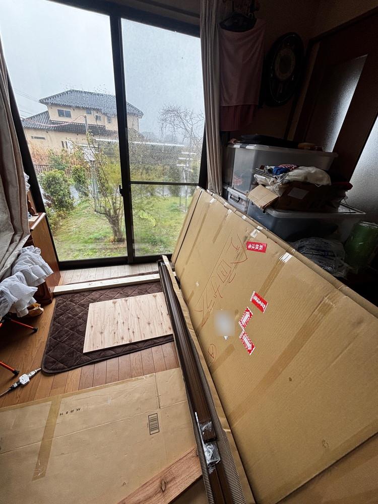 大窓(W1659×H2150)のため発送通知で3ヶ口220㎏とあり、一人で取付け出来るか、