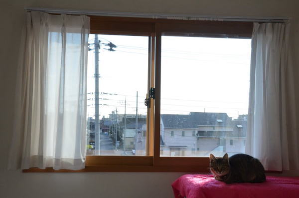 猫ちゃんギャラリー 2011.12.20 宇都宮市在住 くーちゃん(黒) レオちゃん(とら) 宇都宮市在住のくーちゃん(黒)と追加工事の窓ではレオちゃん(とら)登場です。M様のDIY工事中は危ないので見れませんでしたが、完成したとたんにやってきたそうです。お気に入りの場所になりそうですね(=^ ^=)